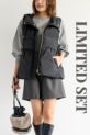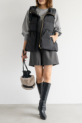 着丈はやや長めに設定しているため、大人っぽいバランスで着こなせるのも魅力、さらにフードから流れるリボンテープが繊細なアクセントとなり、カジュアルなベストにキレイめなニュアンスをプラス◎