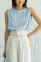 リラックス感のある着心地と、さりげない表情感を楽しめるノースリーブカットソー。